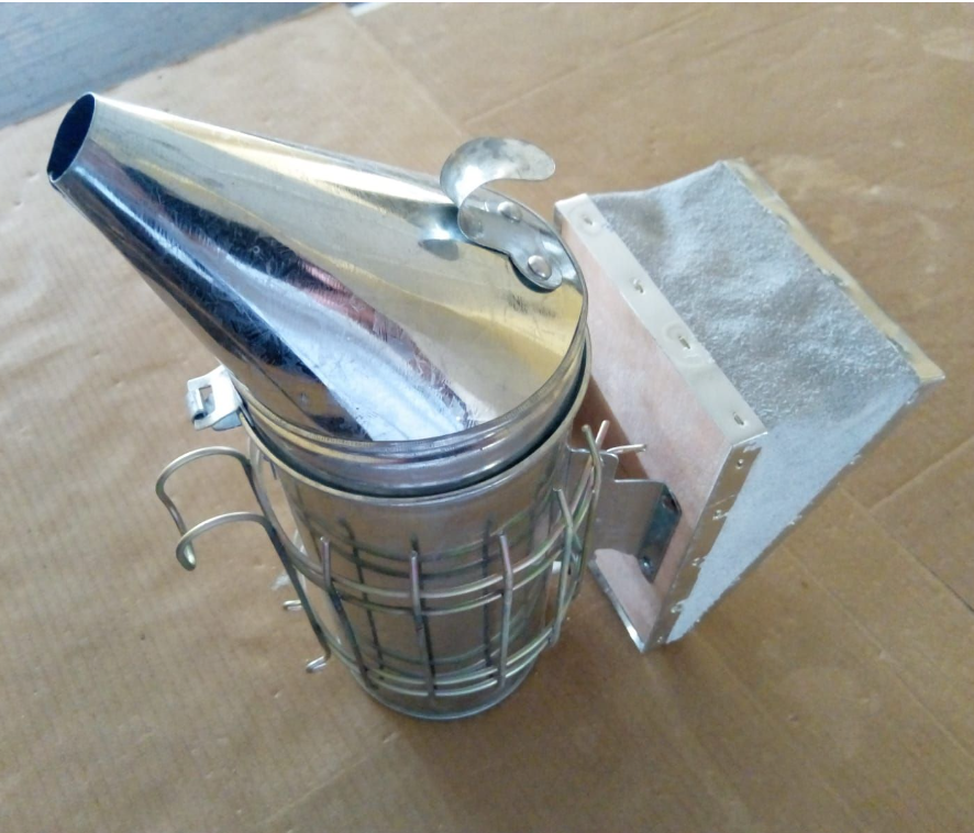 A bee smoker is the device beekeepers use to puff smoke into their hives. This smoke doesn’t harm bees, it just interferes with their sense of smell so that they don’t react to alarm pheromones. Bee smokers are usually referred to as “smokers” for short.