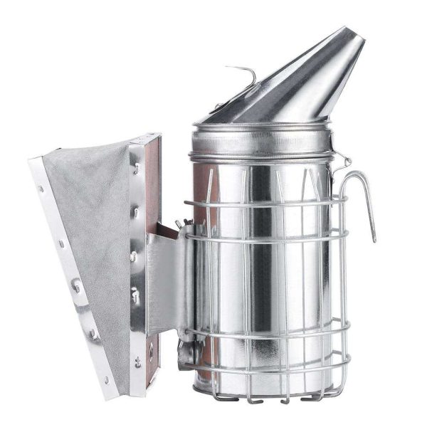 A bee smoker is the device beekeepers use to puff smoke into their hives. This smoke doesn’t harm bees, it just interferes with their sense of smell so that they don’t react to alarm pheromones. Bee smokers are usually referred to as “smokers” for short.