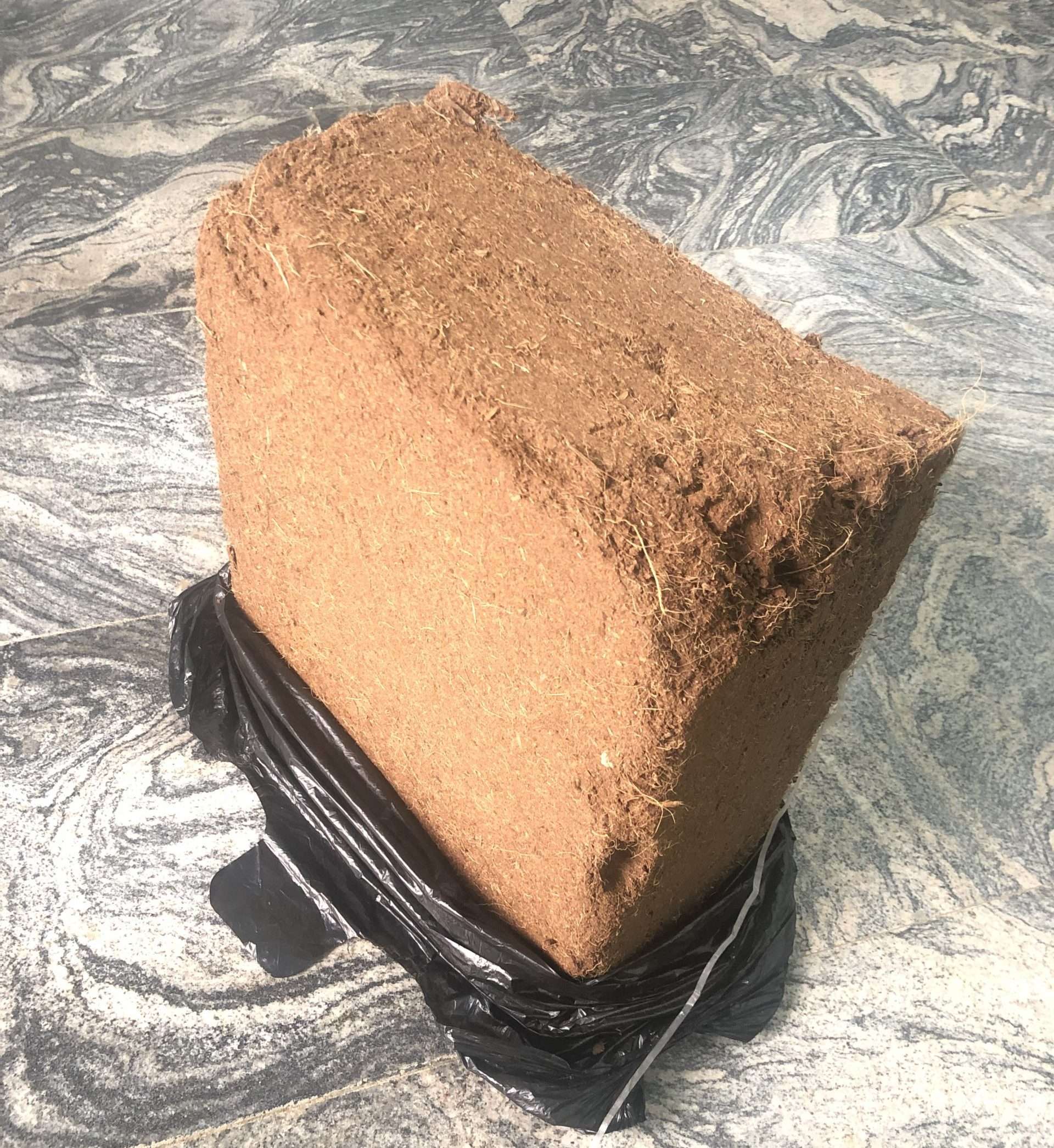 • Stir and fluff coco peat with a garden trowel after 10-15 minutes, add more water if it looks dry. Stop, if it’s loose.