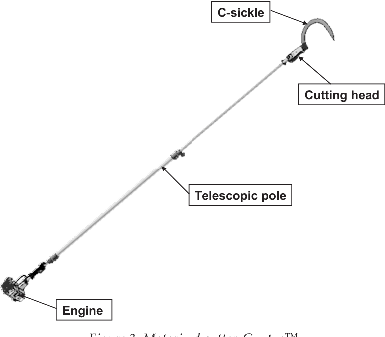 Easy harvesting of palm fruits at heights of up to 5.5 m. A robust telescopic shaft with a multi-function handle, a clean-cut due to a forged sickle, easy-to-change cutting tool, manual fuel pump, long-life air filter system, low vibrations, total length 286 – 399 cm.