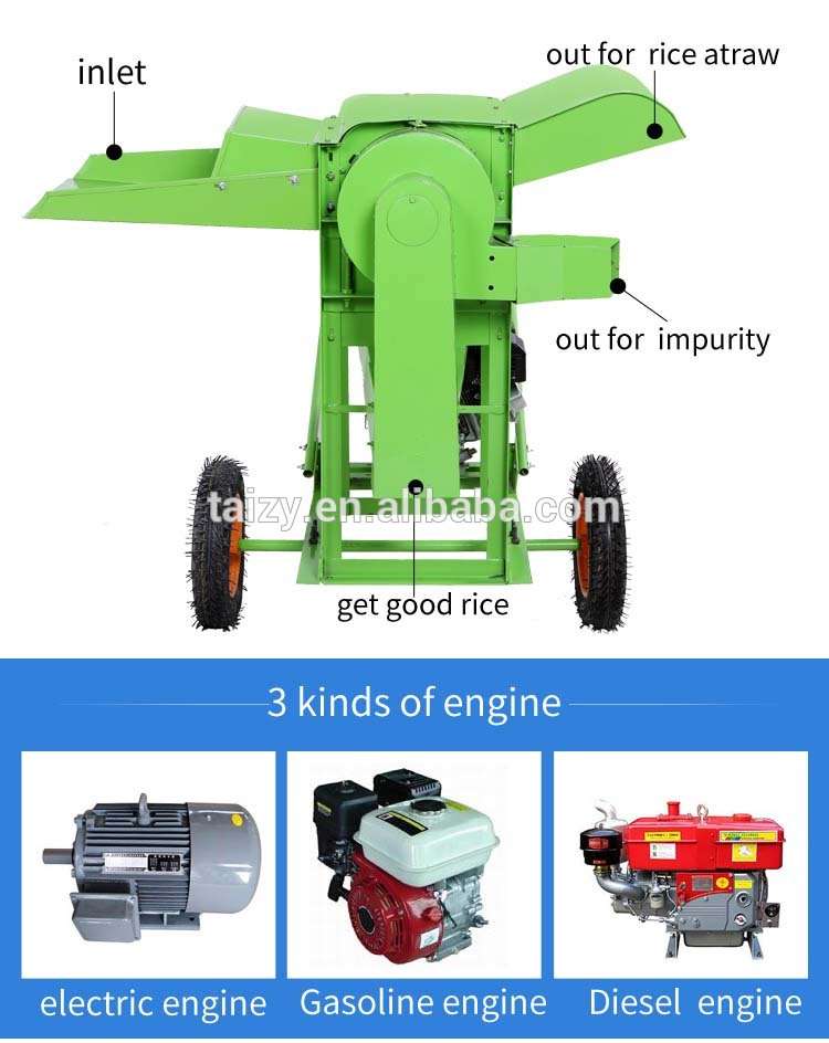 This Rice thresher has a small size and lightweight but boasts high capacity. By changing different screens, it can fit for different raw materials, so you don’t need to buy other threshers, widely applying to thresh many crops. Therefore, it is favoured by many farmers from different countries. The Rice thresher can work with motor, diesel engine and gasoline engine, meeting different customer’s request.
