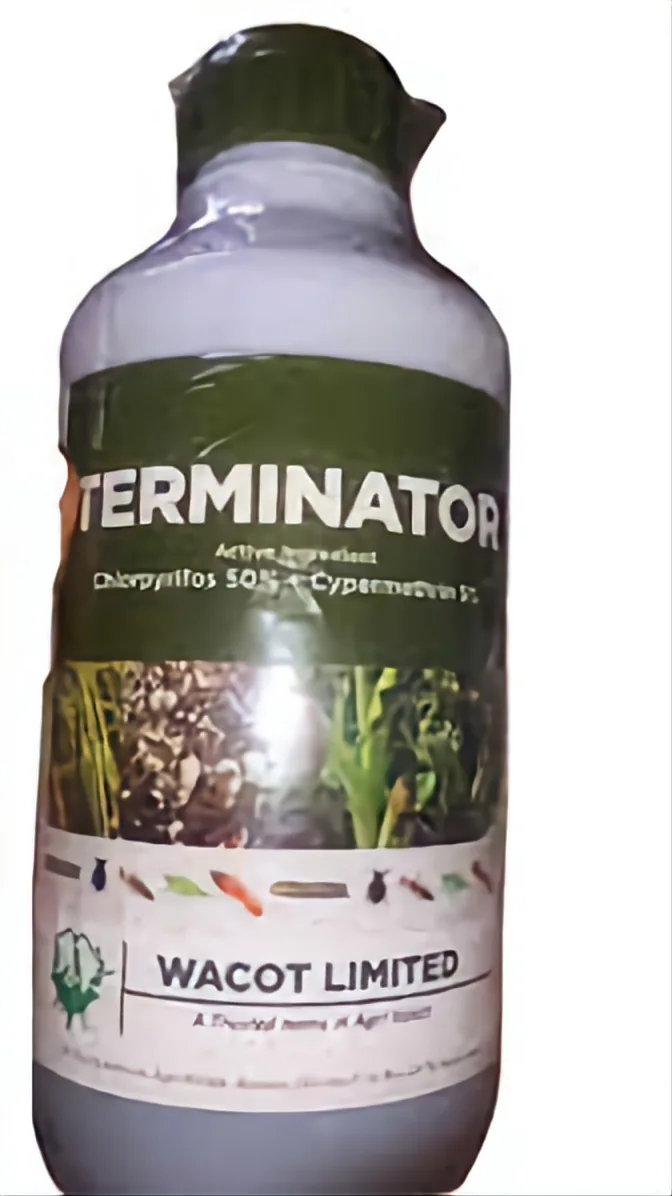 Terminator Insecticide consists of 50% Chloropyrifos and Cypermethrin 5%. It is a powerful non-systemic insecticide with contact and stomach action for controlling biting as well as sucking of insects.